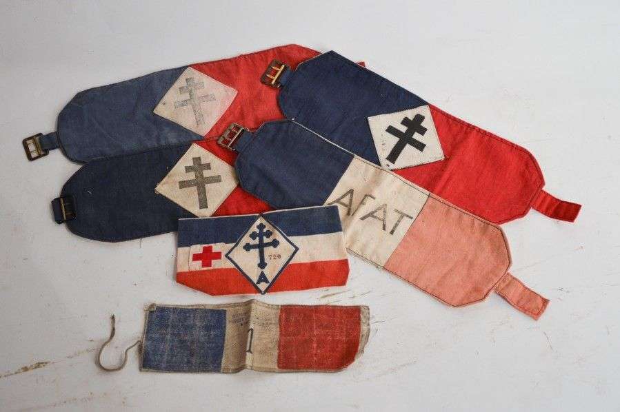 Lot de 6 brassards tricolores: à la Croix de Lorraine (x4), Afat, 1. ABE