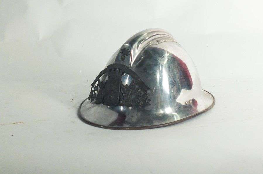 Casque de Sapeurs-Pompiers du Gard, nickelé. Coiffe intérieure et jugulaire en cuir. BE