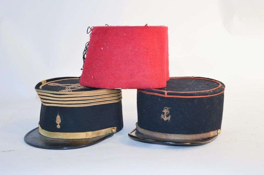 Lot de 2 képis: Colonial, Colonel d'Artillerie. EM. On joint un fez