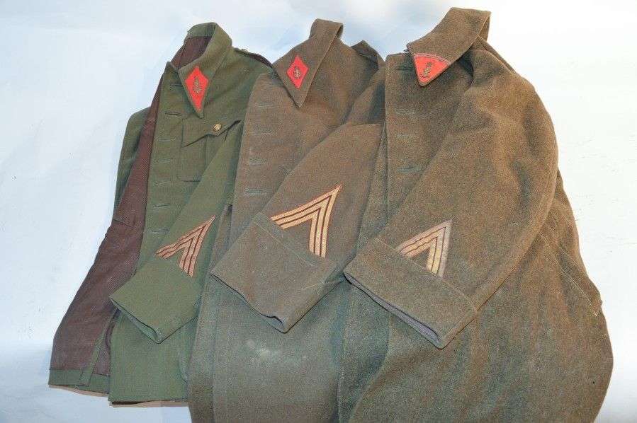 Lot d'uniformes de l'Infanterie de Marine: 2 capotes, une vareuse
