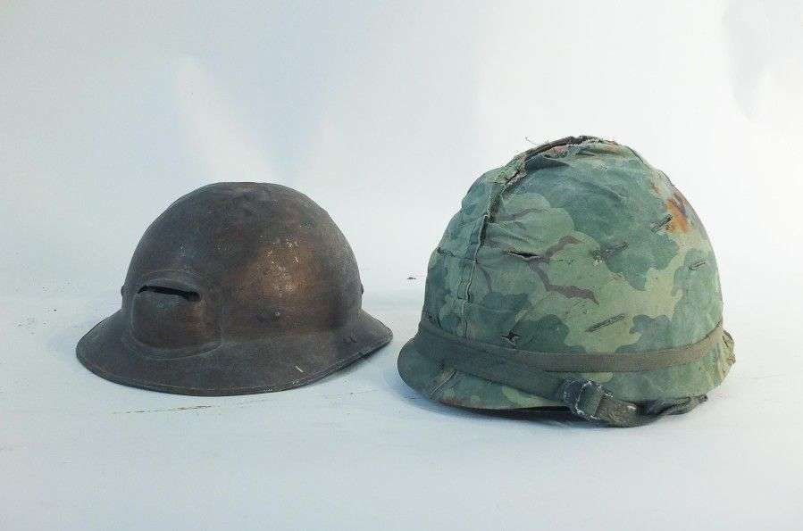 Lot: casque avec couvre-casque camouflé| coque de casque en fer peint. Dan