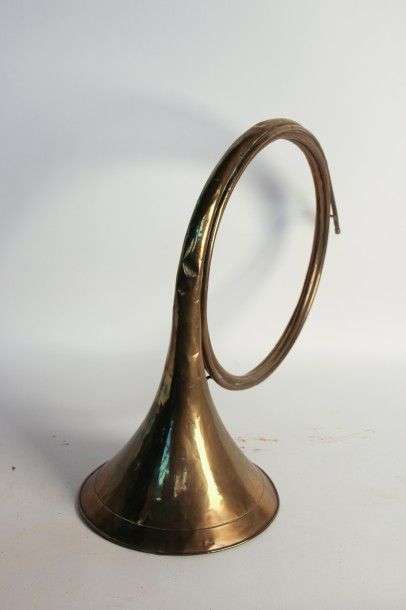 Trompe de chasse, à trois tours et demi, en cuivre, chiffré «AK» et marqué