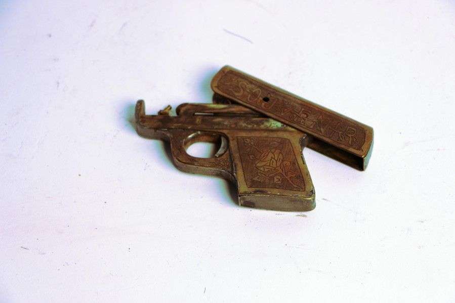 Travaux dit de poilus. Briquet en forme de pistolet automatique marqué «So