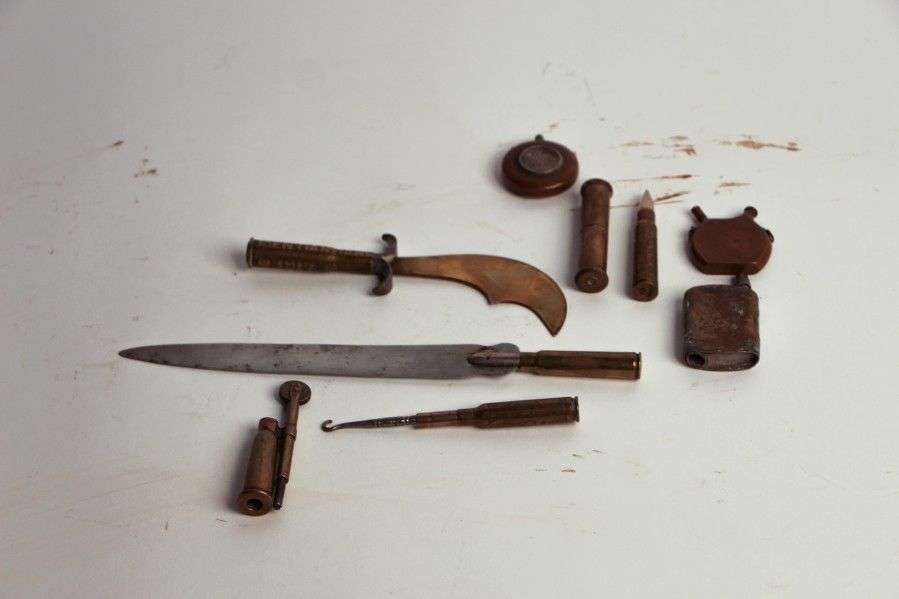 Travaux dit de poilus. Lot: 4 briquets, 2 coupes papier, 1 tire-bouton