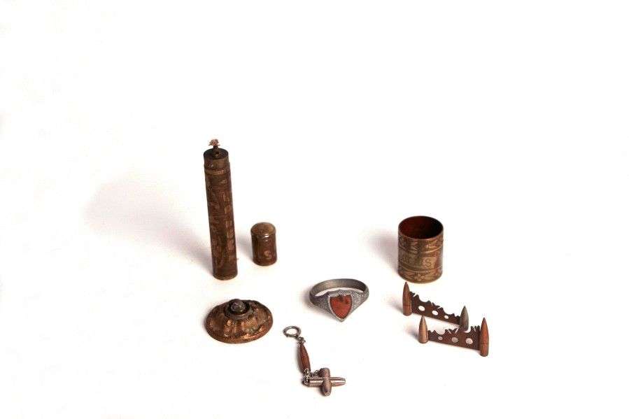 Objets patriotiques: 2 encriers, briquet, ronds de serviette