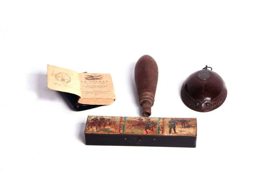 Objets patriotiques: porte-photo, encrier, plumier, poire à plombs, demi n