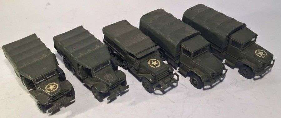 Lot de 5 camions militaires SOLIDO comprenant deux DODGE 6x6 ref 242, un HALF TRACK M5 ref 244 et deux KAISER JEEP M 34 6x6 ref 245