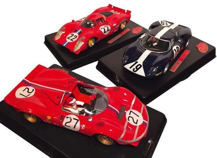 Lot comprenant 3 voitures de circuit slot marque RACER FERRARI 350 P FERRARI 250 LM FERRARI 312 P