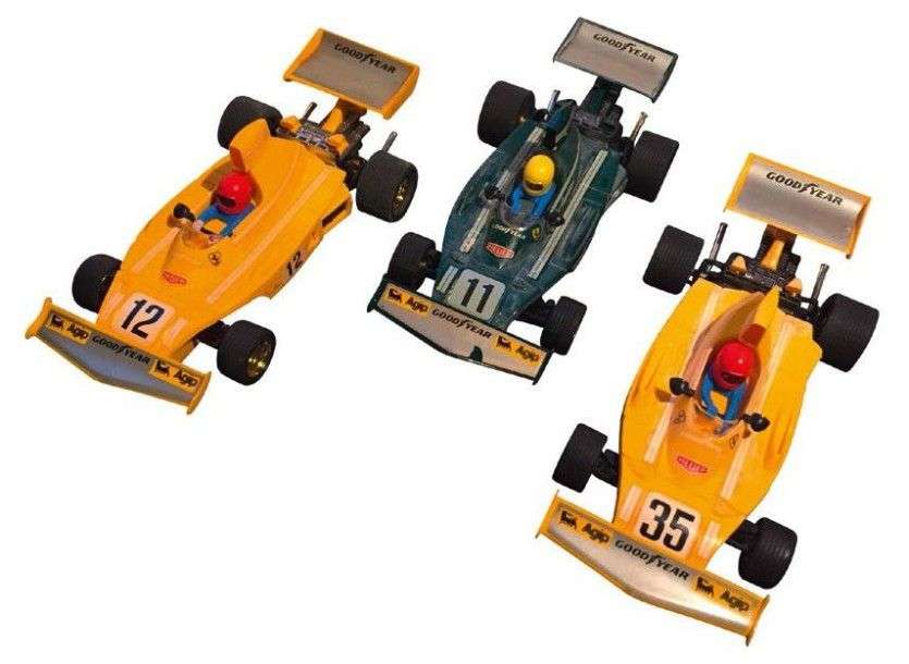 Lot comprenant 3 voitures de circuit slot marque SCALEXTRIC 3 FERRARI B3 F1 Ref: 4052 JAUNE Ref: 4052 JAUNE Ref: 4052 verte foncée