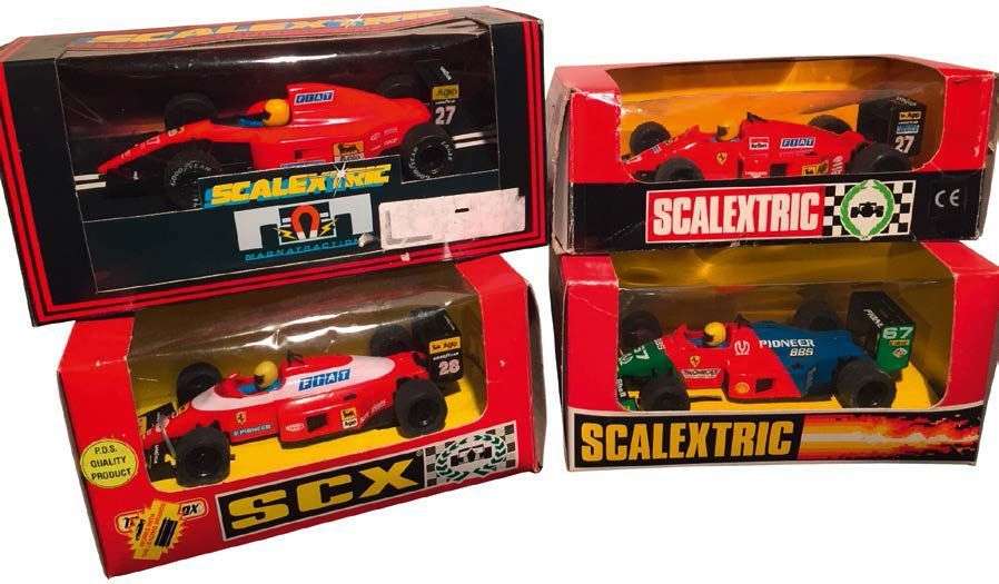 Lot comprenant 4 voitures de circuit slot marque SCALEXTRIC EN BOITES FERRARI F1 Ref: C319 FERRARI F1 Ref: 4017 FERRARI F1 Ref: 8331 FERRARI F1 Ref:83720