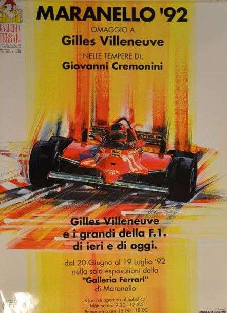 - Un poster «Galleria Ferrari» sur papier glacé, hommage à Gilles Villeneuve, d'après le dessin de Giovanni Cremonini