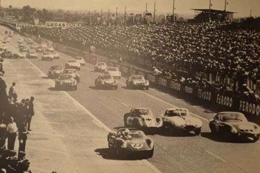 Lot comprenant 4 photos contrecollées sur bois, en noir et blanc, représentant les Ferrari en compétition