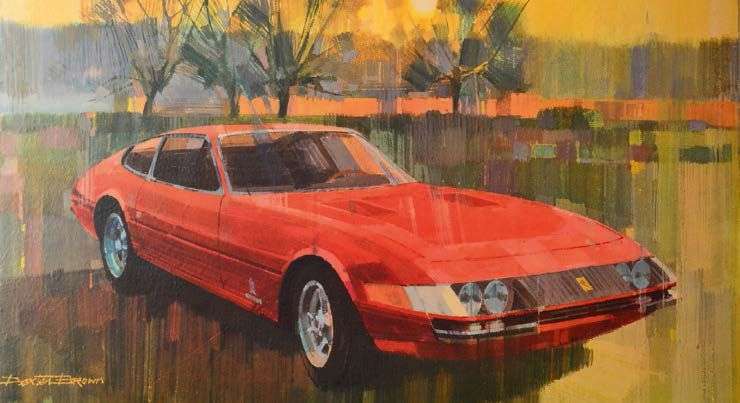 Lot comprenant 4 photos contrecollées sur bois, en couleurs, relatives à la Ferrari Daytona