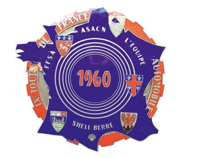 Badge rallye du 9 ème TOUR DE FRANCE AUTOMOBILE 1960 (léger accident à l'é