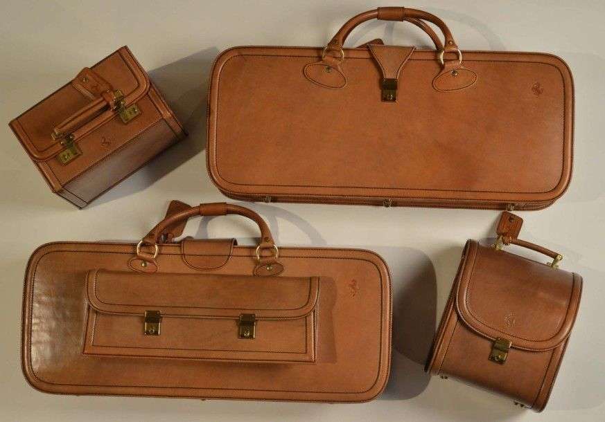 Set de 4 bagages pour Ferrari 328, composé de deux valises, un vanity et une boîte à chaussures