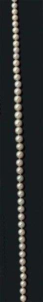 Collier composé d'une chute de 85 perles supposées fines. Fermoir baton en