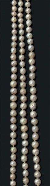 Collier composé de trois rangs de 59, 60 et 59 perles supposées fines non