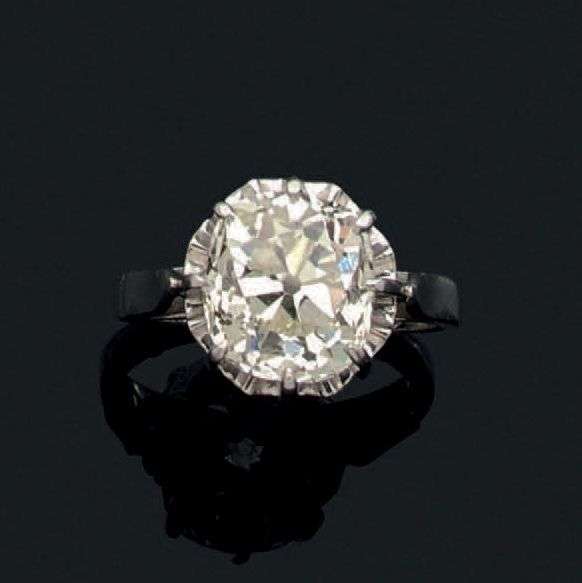 Bague en platine sertie d'un diamant solitaire de taille ancienne de forme