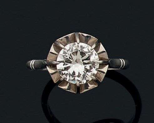 Bague en platine sertie d'un diamant solitaire de taille moderne.