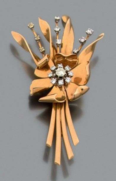 Broche "bouquet de fleurs" en or jaune 18k sertie de diamants de taille br