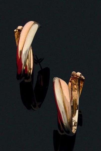 Paire de grandes créoles "Trinity" en or 18k. Signées "Cartier Paris"