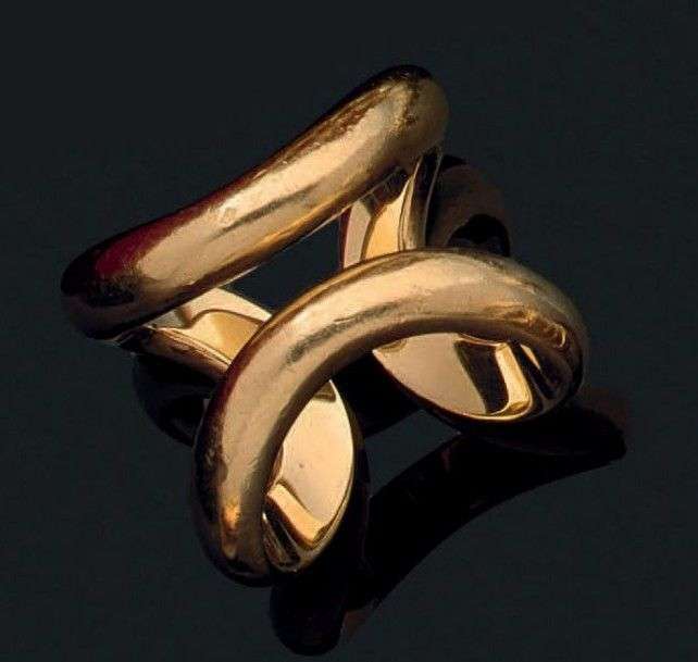 Bague anneau "étrier" en or jaune 18K. Signée et numérotée.
