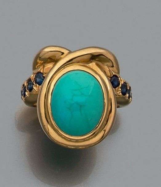 A turquoise, sapphire and yellow gold ring by RENE BOIVIN