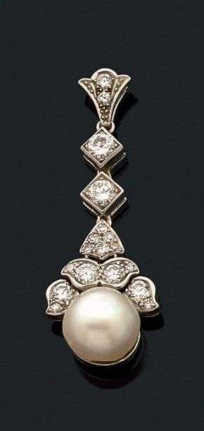 Pendentif en platine composé d’un motif articulé serti de diamants et d'une perle de culture.