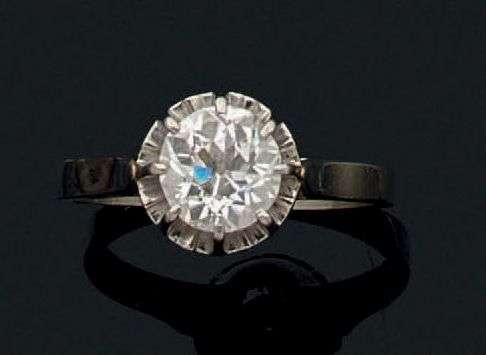 Bague en platine et or gris 18k sertie d'un diamant solitaire de taille ancienne.