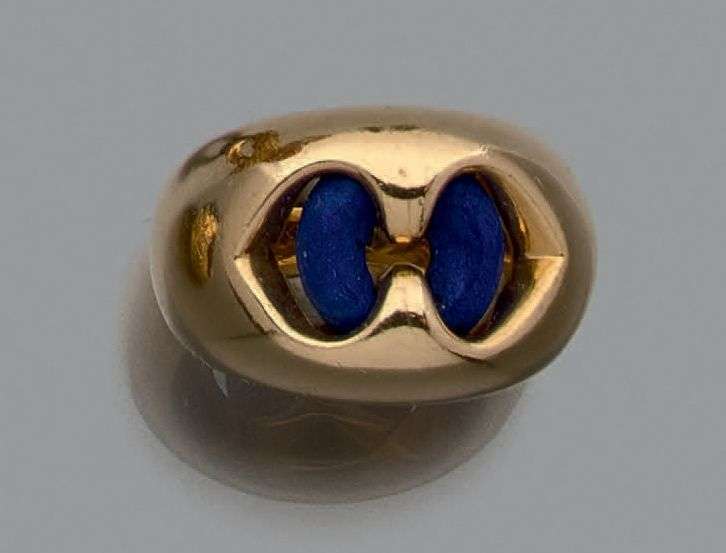 Bague or jaune 18k ornée d'un anneau en lapis lazuli. Signée. Ecrin d'origine.