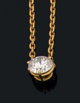 Collier en or jaune 18k serti au centre d'un diamant de taille moderne.