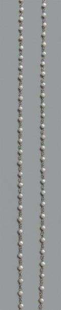Sautoir en platine serti de perles de culture