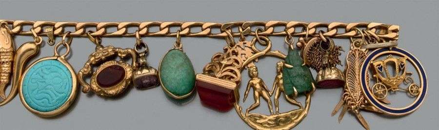 Bracelet "gourmette à breloques" en or jaune 18 k.