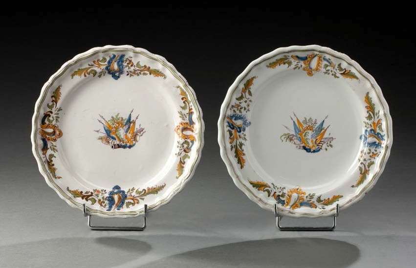 Deux assiettes "aux drapeaux" célébrant la Victoire de la bataille de