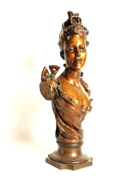 Sujet en bronze représentant le buste d'une jeune fille à la couronne de f