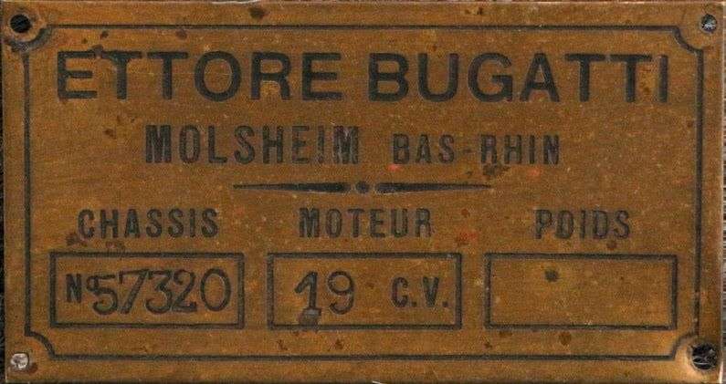 Plaque de constructeur avec frappe châssis numéro 57320 pour modèle 19CV Très bon état
