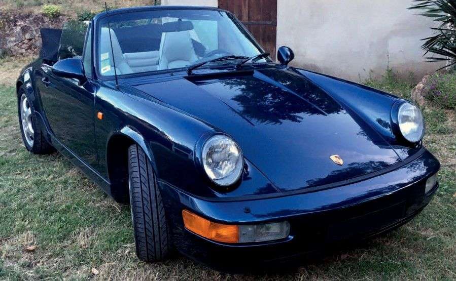 1991 - PORSCHE 964 CARRERA 2 CABRIOLET «Toujours évoluer pour mieux perdurer» Marque: Porsche Modèle: 964 Carrera 2 Cabriolet Millésime: 1991 Kilométrage: 167 800 km au compteur Motorisation: 6 cylindres à plat Cylindrée: 3 600 cm3 N° de châssis: WP0ZZZ96ZMS453009 Carte grise française / French registration Le succès de la 911 s'est fait grâce à de subtiles évolutions. A la fin de la décennie 80, Porsche travaille sur le remplacement de la 3.2L et présente en septembre 1988 au salon de l'auto de Paris, la 964. Elle sera pour la première fois dans l'histoire de Porsche en quatre roues motrices. La version deux roues motrices sortira l'année d'après avec les versions Targa et cabriolet. Les trois déclinaisons de carrosserie peuvent bénéficier de la transmission 2 ou 4 roues motrices. Bien qu'esthétiquement très proche de la 3.2 litres même si elle propose des pare-chocs enveloppants et des jupes en bas de caisse, la nouvelle 911 est nouvelle à 85 %. Cette génération très courte de 911 qui ne durera que 4 ans sera produite à un peu plus de 31 000 exemplaires. La 964 conserve le célèbre Flat 6 refroidi par air, cette fois-ci catalysé et à double allumage. Doté de 3,6 litres de cylindrée, il développe 250 ch. à 6 100 tr/mn. La voiture s'offre des performances de premier rang avec un 0 à 100 km/h abattu en 5,5 s et le kilomètre DA en 25 s. Le moteur peut être associé à une boîte manuelle 5 rapports ou Tiptronic 4 rapports. La direction assistée est montée en série, ce qui rend la voiture plus facile à conduire que la 3.2L. Nouveauté importante, un aileron se déploie automatiquement à partir de 80 km/h. En 1992 un restylage engendre le remplacement des jantes Speedline par des jantes et des rétroviseurs plus aérodynamiques appelés «Cup». Les Airbags à l'avant deviennent de série tout comme la climatisation. Le freinage opéré par 4 disques est à la hauteur de la réputation de la marque. Elle est la parfaite synthèse entre l'allure traditionnelle de la 911 et la technologie