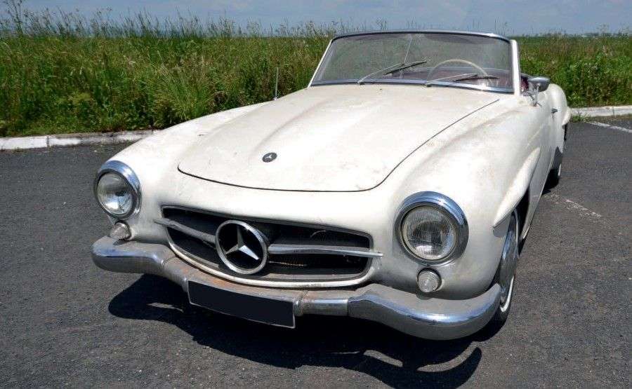 1960 - MERCEDES-BENZ 190 SL «Une étoile qui ne s'arrêtera jamais de briller» Marque: Mercedes-Benz Modèle: 190 SL Millésime: 1960 Kilométrage: 25 000 km au compteur Motorisation: 4 cylindres en ligne Cylindrée: 1 897 cm3 N° de châssis: 121 040 100 168 98 Carte grise française / French registration Il y a 62 ans aujourd'hui était présentée la 190 SL au New York Motor Show de février 1954. Sous l'influence de Max Hoffman, elle est l'oeuvre des designers maison Karl Wilfert et Walter Hackert. L'objectif était de concevoir un véhicule se rapprochant le plus possible des lignes de la 300 SL, tout en proposant une voiture plus confortable à un coût plus accessible. Dans sa configuration finale, la 190 SL est la réponse parfaite à ces deux impératifs. L'une est une vraie sportive, l'autre est une automobile d'usage quotidien, robuste et fiable, d'entretien réduit. Elle reprend le châssis plateforme de la berline 180, qui est raccourci et repose sur une suspension avant indépendante et des demi-axes oscillants arrière avec ressorts hélicoïdaux. Le freinage est assuré par 4 freins à tambours à commande hydraulique. Très prisée par les cinéastes et les photographes de mode elle apparaît dans de nombreux films et aujourd'hui dans beaucoup de publicités. La voiture propose de bonnes conditions de confort, elle vire parfaitement à plat, un zeste survireuse mais toujours contrôlable grâce à son boîtier de direction d'une excellente précision. Avec une ligne élégante, un freinage efficace, un tableau de bord élégant et complet, un beau volant ivoire, des sièges en cuir, elle flatte celui qui la conduit. Sans être très sportif, son moteur 4 cylindres 1.9 litres développe 105 chevaux et propose souplesse et endurance, il est couplé à une boite mécanique à 4 rapports et ses performances sont honorables. Il est même possible de voyager à trois dans ce cabriolet, en effet, un strapontin transversal est proposé en option. Les acheteurs pouvaient aussi per
