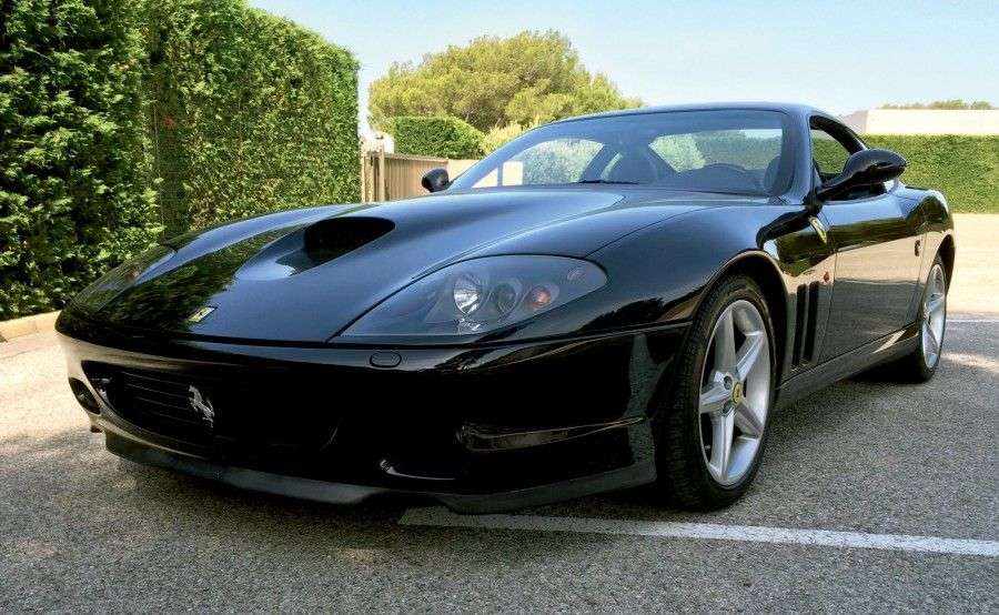 2002 - FERRARI 575 M MARANELLO «Un 12 cylindres et à l'avant comme l'aurait voulu Enzo» Marque: Ferrari Modèle: 575 M Maranello Millésime: 2002 Kilométrage: 15 130 km au compteur Motorisation: 12 cylindres en V Cylindrée: 5 748 cm3 N° de châssis: ZFFBT55J000128656 Carte grise allemande / German registration Maranello: toute l'histoire du mythique constructeur au cheval cabré se voit résumée en un mot. Lancée en 1996, la Ferrari 550 Maranello remplace la 512M, dernière évolution de la célèbre Testarossa. C'est une nouvelle fois Pininfarina, qui signe le superbe dessin de la nouvelle Ferrari. Elle doit son surnom de «Squale» à son long capot et ses prises d'air latérales. Sur le plan technique, elle marque le retour de Ferrari au moteur V12 avant pour sa GT. Cette architecture avait été abandonnée après la 365 GTB/4 Daytona: la Testarossa avait en effet un 12 cylindres à plat en position centrale arrière. Dérivé de la 456 GT, le moteur d'une cylindrée de 5,5l développe 43 chevaux de plus avec un couple progressant lui aussi pour culminer à 568 Nm à 5000 trs/min. Avec 485 chevaux et malgré un poids de 1690 kilos, la Maranello atteint les 320 km/h, franchit le 400 mètres départ/arrêté en 12,5 secondes, et le 1000 mètres en 22,5 secondes. Le V12 de la Maranello est accouplé à une boîte manuelle 6 vitesses, située à l'arrière, assurant de ce fait une répartition des masses optimale. L'ASR, l'anti-patinage et les suspensions réglables assistent le conducteur et lui permettent de modifier le tempérament de la voiture. Le freinage est assuré par des disques ventilés de 300 mm à l'avant et 310 mm à l'arrière. L'habitacle offre un véritable agrément| sans renier ses gènes de sportive, la Maranello est une GT confortable. Produite de 1996 à 2002, la Maranello évoluera ensuite en 575M, avec un moteur poussé à 5.7L de cylindrée développant 515 chevaux, des freins optimisés, ainsi qu'un nouvel intérieur. La boite de vitesses séquentielle F1 Magneti- Ma