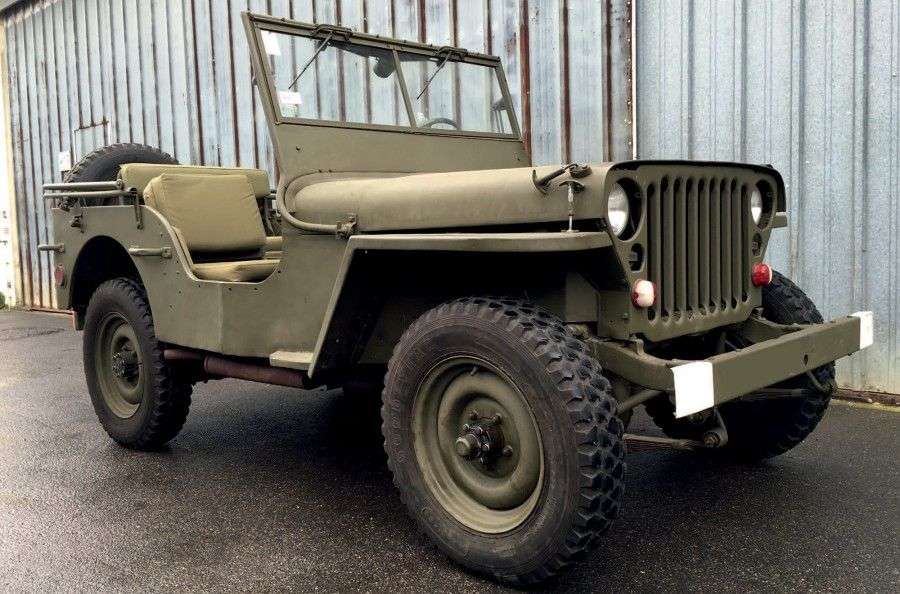 1943 - JEEP WILLYS MB «La voiture à tout faire qui libéra le monde» Marque: Willys Modèle: Jeep MB Millésime: 1943 Kilométrage: 2 130 miles au compteur Motorisation: 4 cylindres en ligne Cylindrée: 2 199 cm3 N° de châssis: 244009 Carte grise française / French registration Si l'origine de son nom reste toujours inconnu, la Jeep est entrée dans le dictionnaire mondial pour identifier le véhicule 4x4 qui a libéré le monde, promesse d'un voyage extraordinaire. Alors que la guerre menace, le gouvernement américain effectue un appel d'offre pour un véhicule léger, polyvalent et efficace. Bantam, Ford et Willys y répondront et si le premier fournit le prototype le plus concluant, ce sont Willys puis Ford, du fait de capacités de production supérieures qui se chargeront de la production de masse du nouveau 4x4. C'est un véhicule à usage multiple, à quatre roues motrices, servant au transport du personnel ou du matériel et particulièrement apte aux missions de reconnaissance et de liaison. La carrosserie est découverte et la capote est amovible. Le pare-brise peut être rabattu sur le capot ou son vitrage relevé sur l'extérieur. La roue de secours se trouve à l'arrière du véhicule où est fixé également le crochet d'attelage. Le moteur est un quatre cylindres «Go Devil» en ligne d'une cylindrée de 2 199 cm3 alimenté par un carburateur simple corps développant 60 cv à 3 600 t/mn. La boîte de vitesses comporte trois rapports plus un réducteur qui permet les évolutions en terrain varié et une boite de transfert permettant de passer de deux à quatre roues motrices. La direction est à vis et galets, les suspensions avant et arrière sont à essieu rigide, à lames et le freinage est assuré par des tambours. La jeep peut en vitesse de pointe dépasser les 100 km/h. Par sa polyvalence, la Jeep est « l'engin à tout faire» de l'armée américaine. Déclinée en version six places, amphibie, blindée ou encore en version ferroviaire, elle aura été l'un des trois principaux outils
