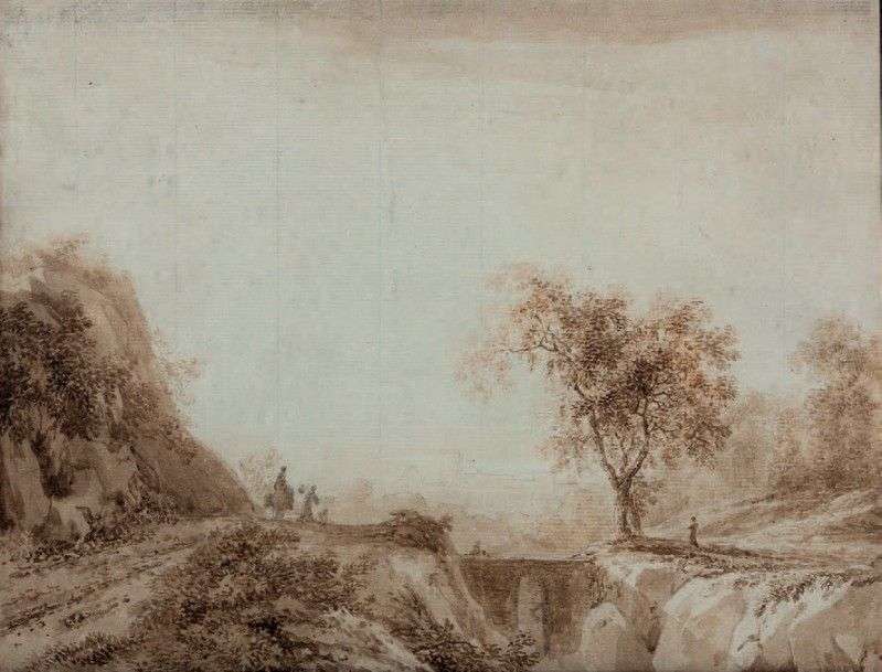Crayon, plume, encre brune et lavis