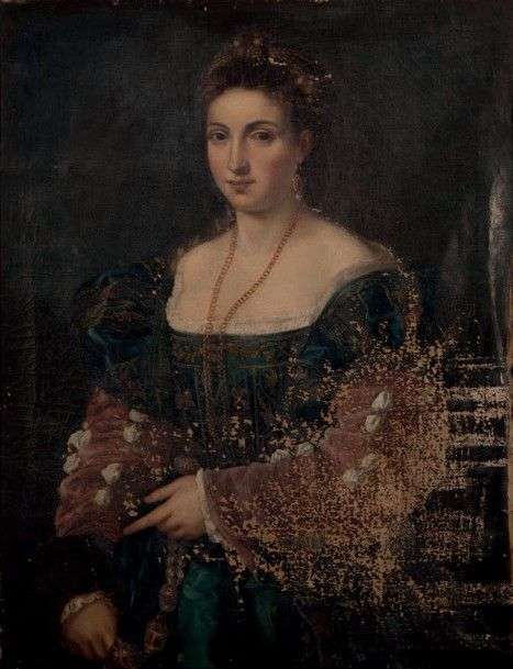 Reprise du tableau (Toile, 100 x 75 cm) conservé au Palais Pitti à Florence.