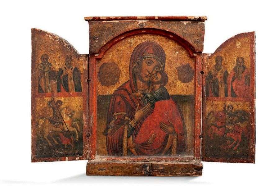Tryptique en bois. Russie. Début XXème siècle.