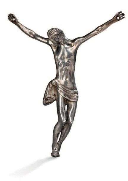 Christ en argent. La tête est inclinée sur l'épaule droite, périzonium nou