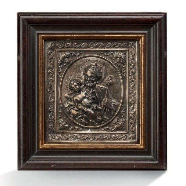 Panneau d'art Ibérique en argent étranger réprésentant Saint-Joseph tenant