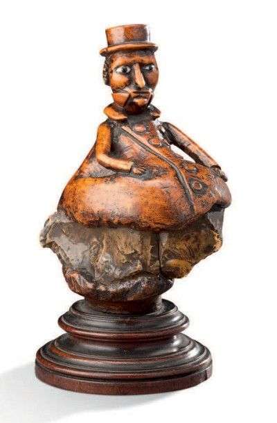 Gratte allumette en bois et silex représentant un petit personnage en redingote