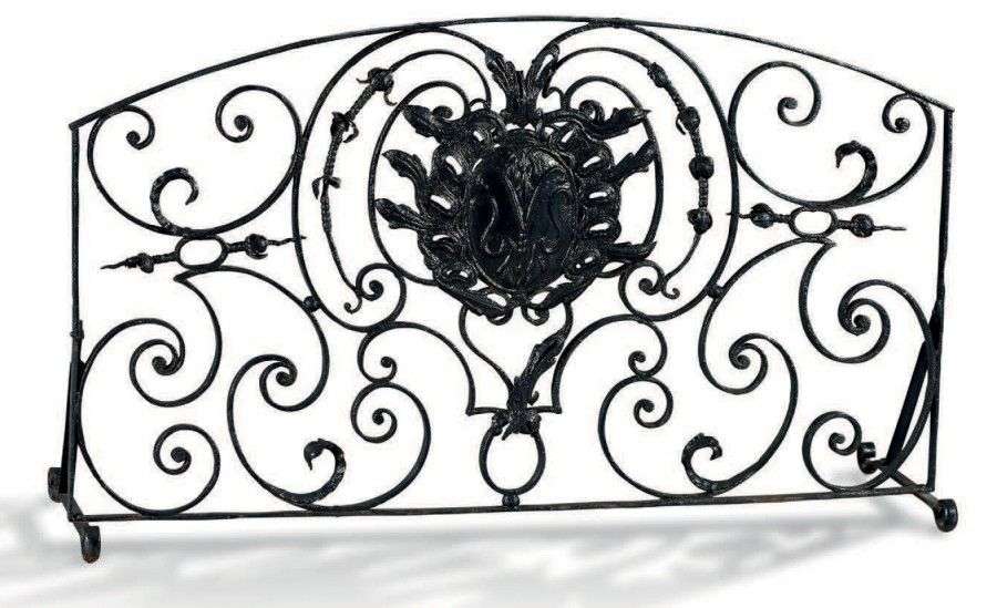 Pare feu en fer forgé à décor au centre d'un blason dans une coquille et e