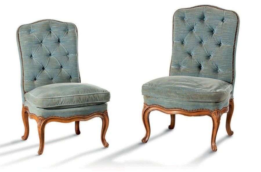 Paire de petites chauffeuses en hêtre mouluré reposant sur quatre pieds cambrés. L'une d'époque Louis XV, l'autre de style au modèle.