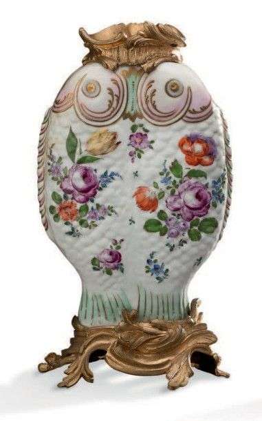 Paire de vases poissons en porcelaine polychrome dans le goût de Saxe
