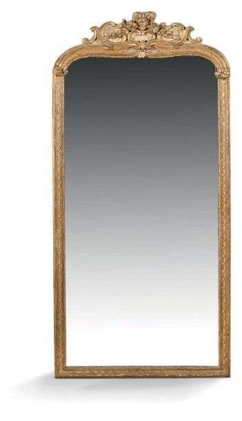 Miroir en bois laqué et doré à décor d'une frise d'entrelacs. Le fronton orné de fleurettes et enroulements.